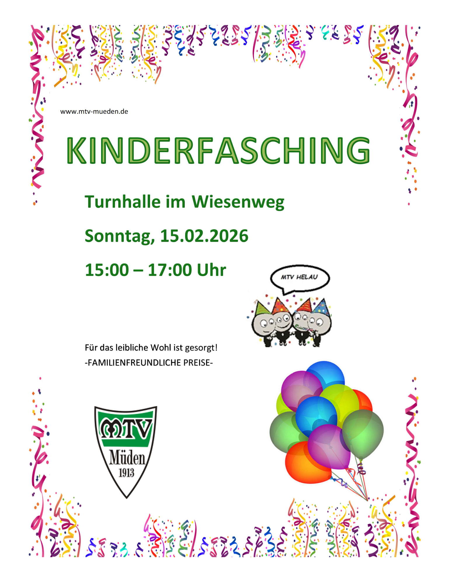 Im Februar wird wieder Kinderfasching in der Turnhalle gefeiert! Wir freuen uns über rege Teilnahme!